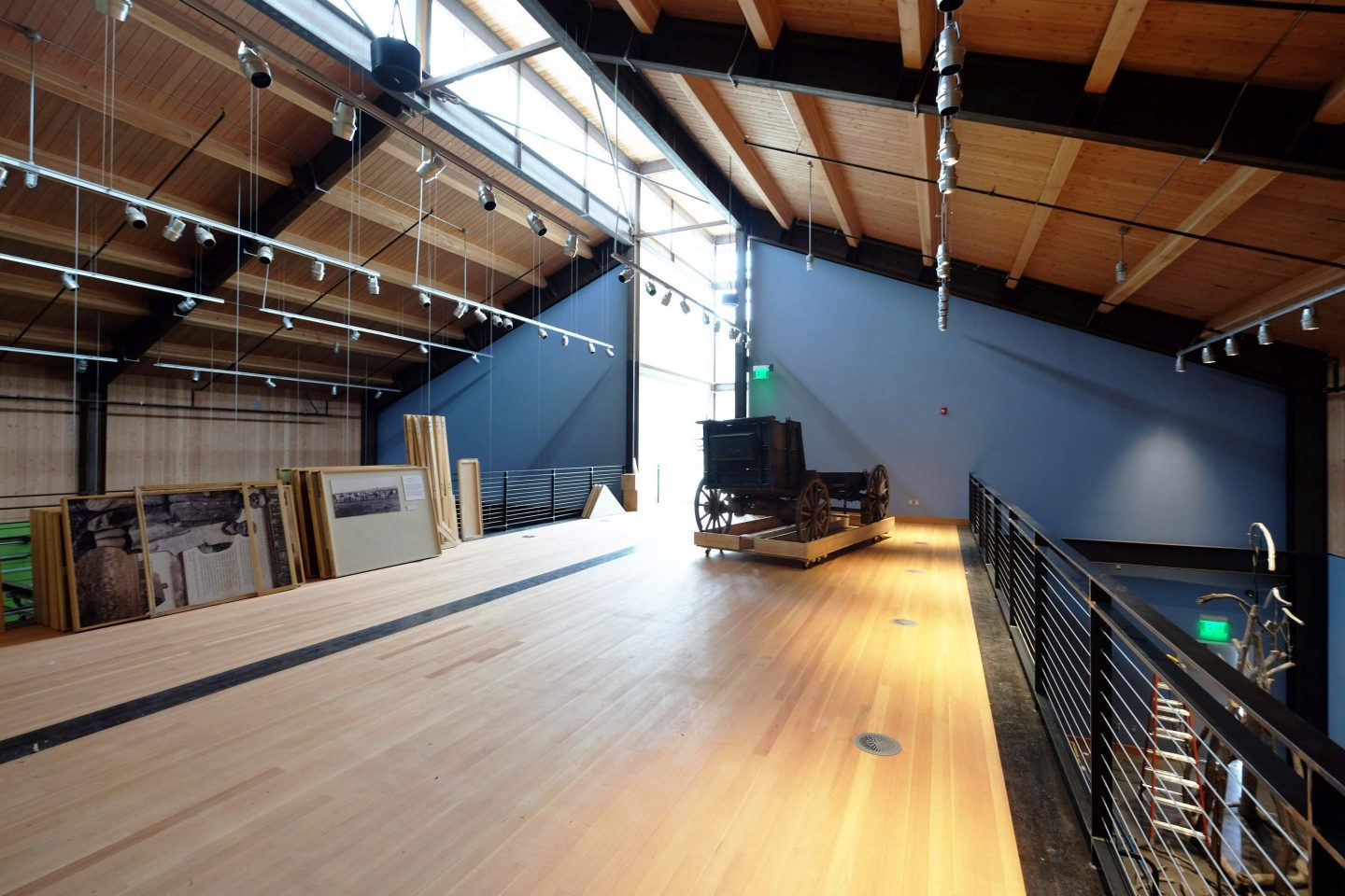 The building interprets the massing of waterfront industrial facilities in form and material, while providing the interior programming suitable to a museum. Referencing historic daylight monitors, a light well pierces the ban-shaped volume, providing a visual cue for circulation, stairs, and a central focal point from Highway 101. Ground floor spaces are primarily public or commercial, with a gift shop and multi-purpose gathering space supporting the large gallery. Second floor programming is primarily dedicated to staff and volunteer offices, boardrooms, archives, and travelling gallery mezzanine. A stair tower serves as a repository to tall exhibits, such as canoes, pulleys, or other suspended elements that require the 40-foot clear exhibit space.
