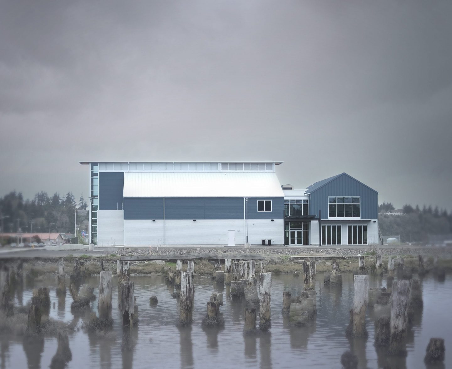 The building expression portrays historic net shed, mill, and cannery structures using a modern form that matches historic district guidelines with visual landmark and cultural catalyst goals. As a gathering place for small to large groups, the site connects the Coos Bay Wharf Trail to historic docks that will once again host the tall ships of the Pacific Northwest.