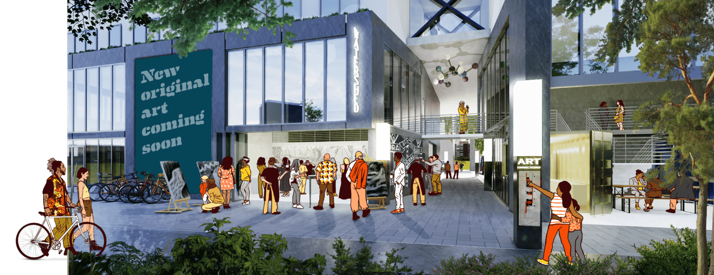 Over the next five years, Watershed will realize a five-building live/work district called The Bend. Designed to support affordable living, shared creative space, and social connection, The Bend is a platform for inclusive community-building. With 600 new homes—designed to remain affordable to low- and moderate-income residents—The Bend will house more than 1,500 people. This is housing that closes the gap between where people work and where they can afford to live.