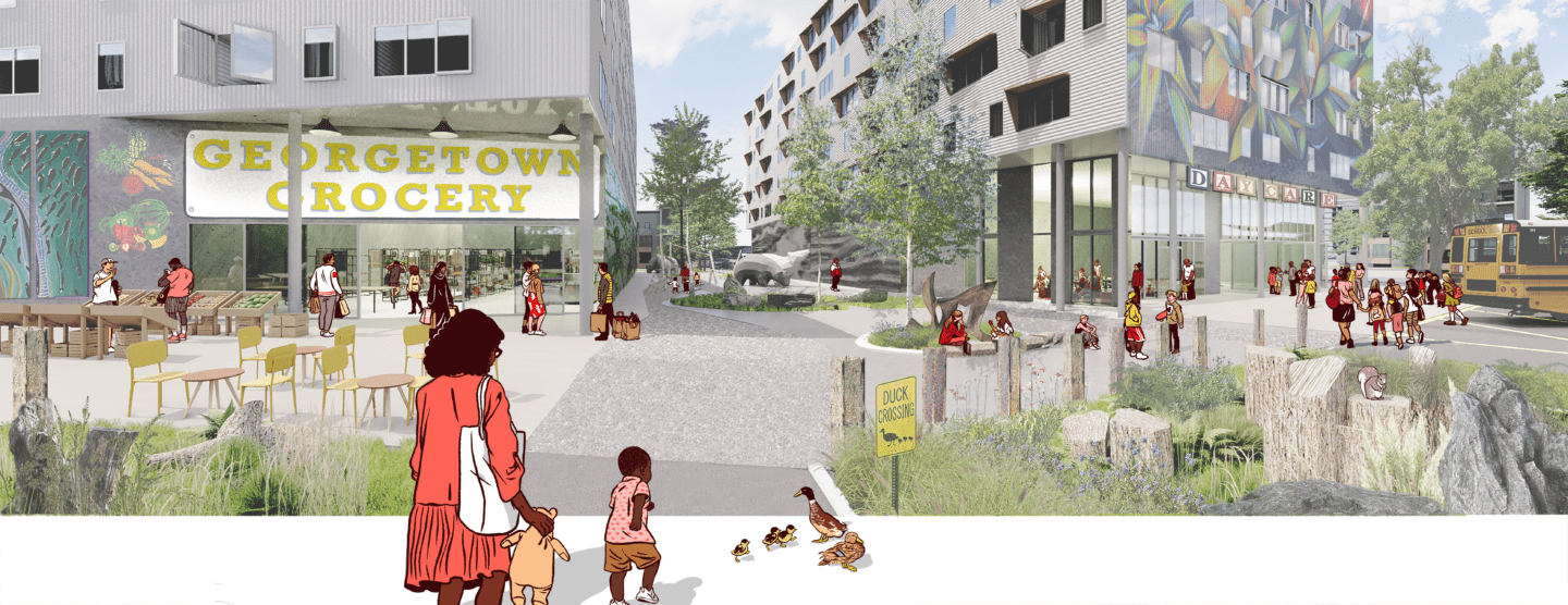 In partnership with Watershed Community Development, our team is shaping a community-centered vision for Georgetown, Seattle, rooted in affordable placemaking and long-term resilience. Our team crafted a master plan, design guidelines, and an urban design approach that prioritizes everyday magic at the street level. Through strategic real estate development and a commitment to community ownership, the project will create space for small businesses, nonprofits, artists, and neighbors to grow together.