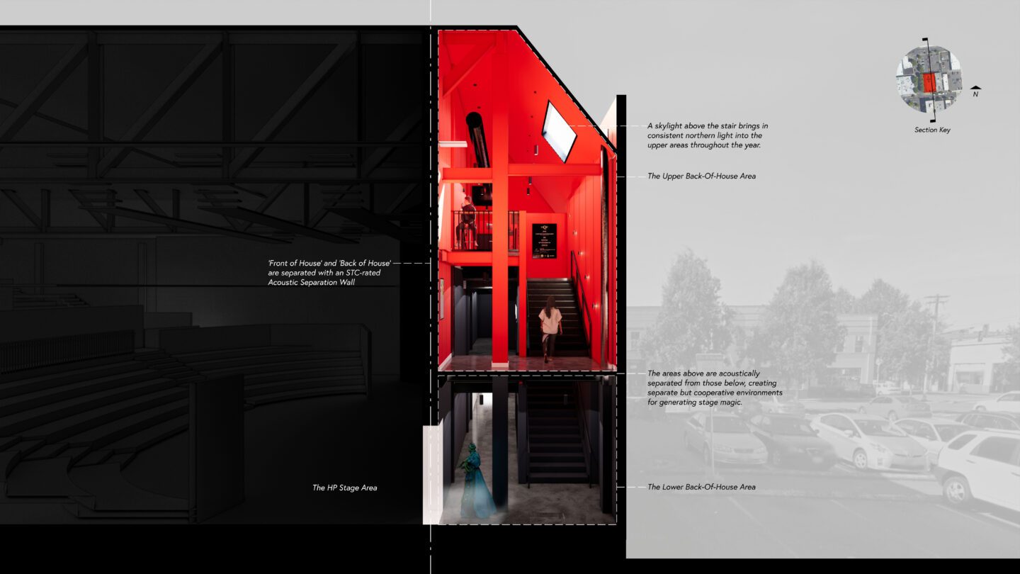 Future project phases will focus on enhancing ticketing, arrival, and gathering experiences through vestibule improvements, a lounge, and ADA restroom improvements. These phases will also add a rehearsal / black box theater to allow for smaller productions and expanded rehearsal opportunities, create dedicated dressing rooms and restrooms that are accessible and gender neutral, provide improved theater production deck space, optimize the existing office spaces to improve collaborative work and employee comfort, and help the building use less energy. Rehabilitation and improvement of the theater will increase Harlequin Productions’ reach, equity, and social discourse to a wide range of communities.