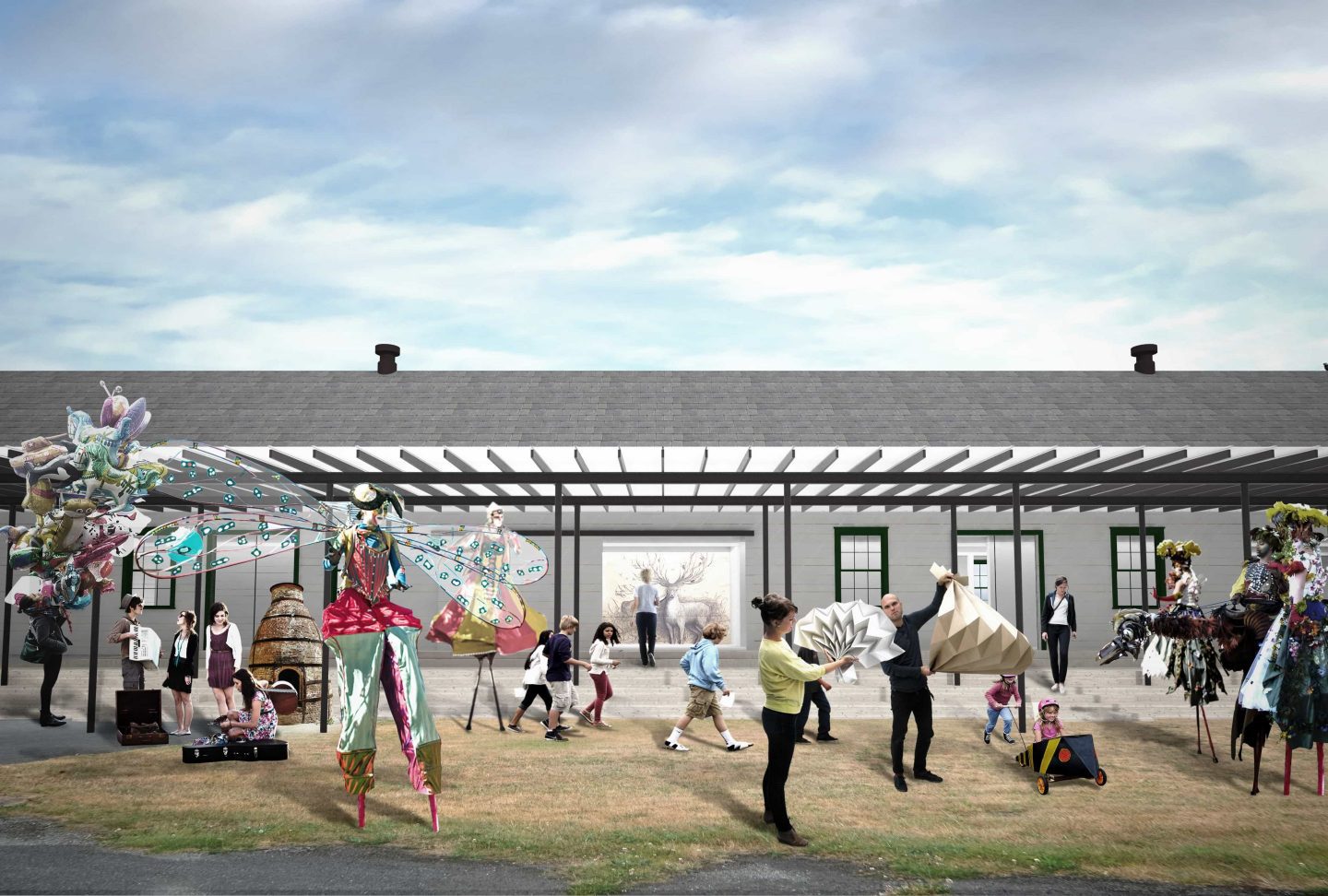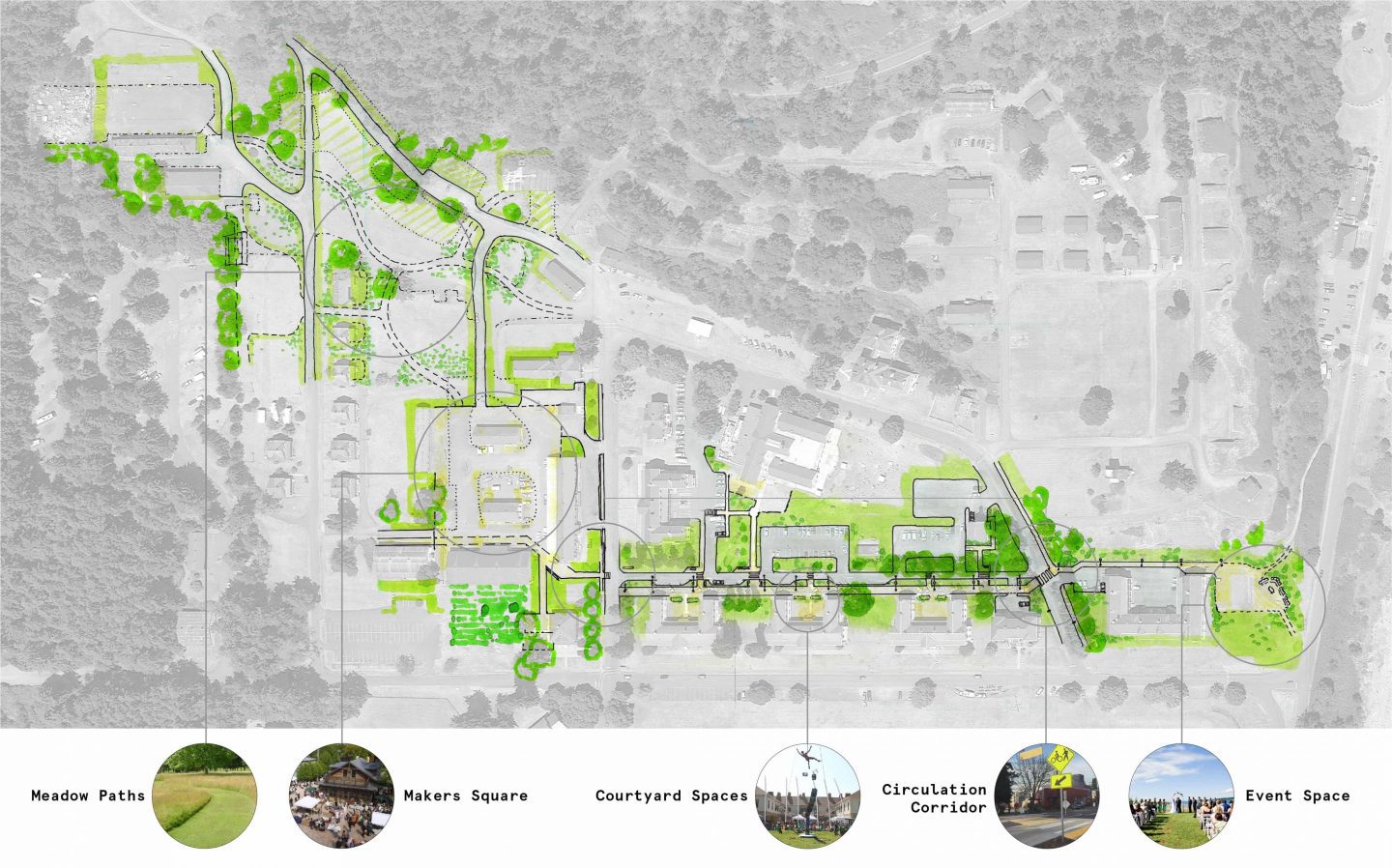 The historic service corps of the fort, comprised of humbly beautiful barnlike structures evolved as Makers Square, a new home for artisan study. Resulting from twelve months of programming interviews, surveys, and workshops, Makers Square will provide a resilient resource for arts programming, from digital to analog, multimedia to fine arts, with foundations both in history and the future. With loading docks, outdoor work areas, improved pedestrian circulation, Makers Square will be home to artist studios, classrooms, workshops, a gallery, and residency programs for local, regional, and national attendees.