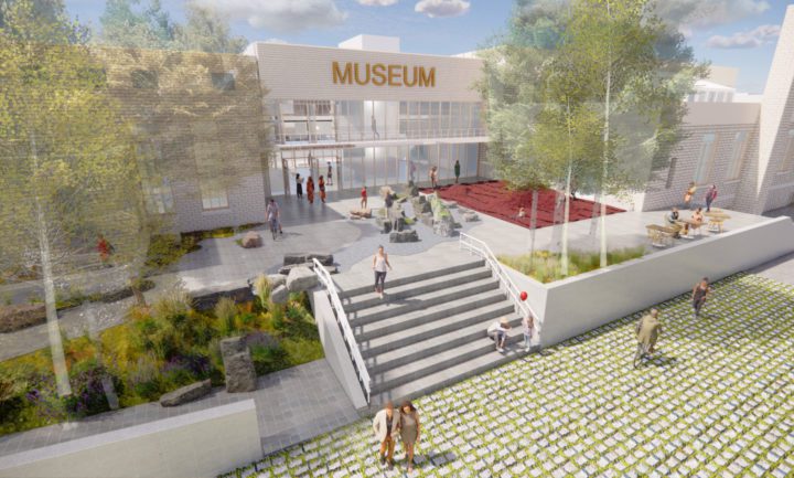 The courtyard concept creates a welcoming and open space for visitors – both new and returning – by creating a strong physical and visual connection between the existing Centennial Park and a new, welcoming east-facing entry plaza of the museum. Visitors are welcomed to the vibrant cafe, courtyard, and gathering space for a moment or the day, and a constant invitation to return any time.